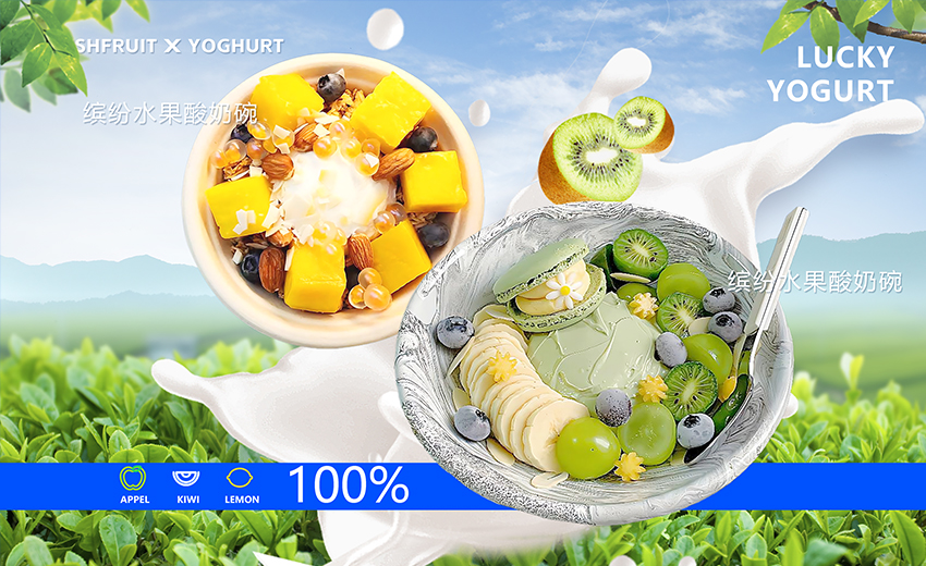创新:灌装现制酸奶,每一罐 都使用"0 蔗糖风 味发酵 乳'酸 奶 基 底 以 7 种 菌 种 发 酵:并 搭 配 不 同 鲜 果 现 制 而 成:致 力 于 为 消 费 者 提 供 更 健 康 美 味 的 饮 品与 时 尚 趣 味 的 消 费 体 验!